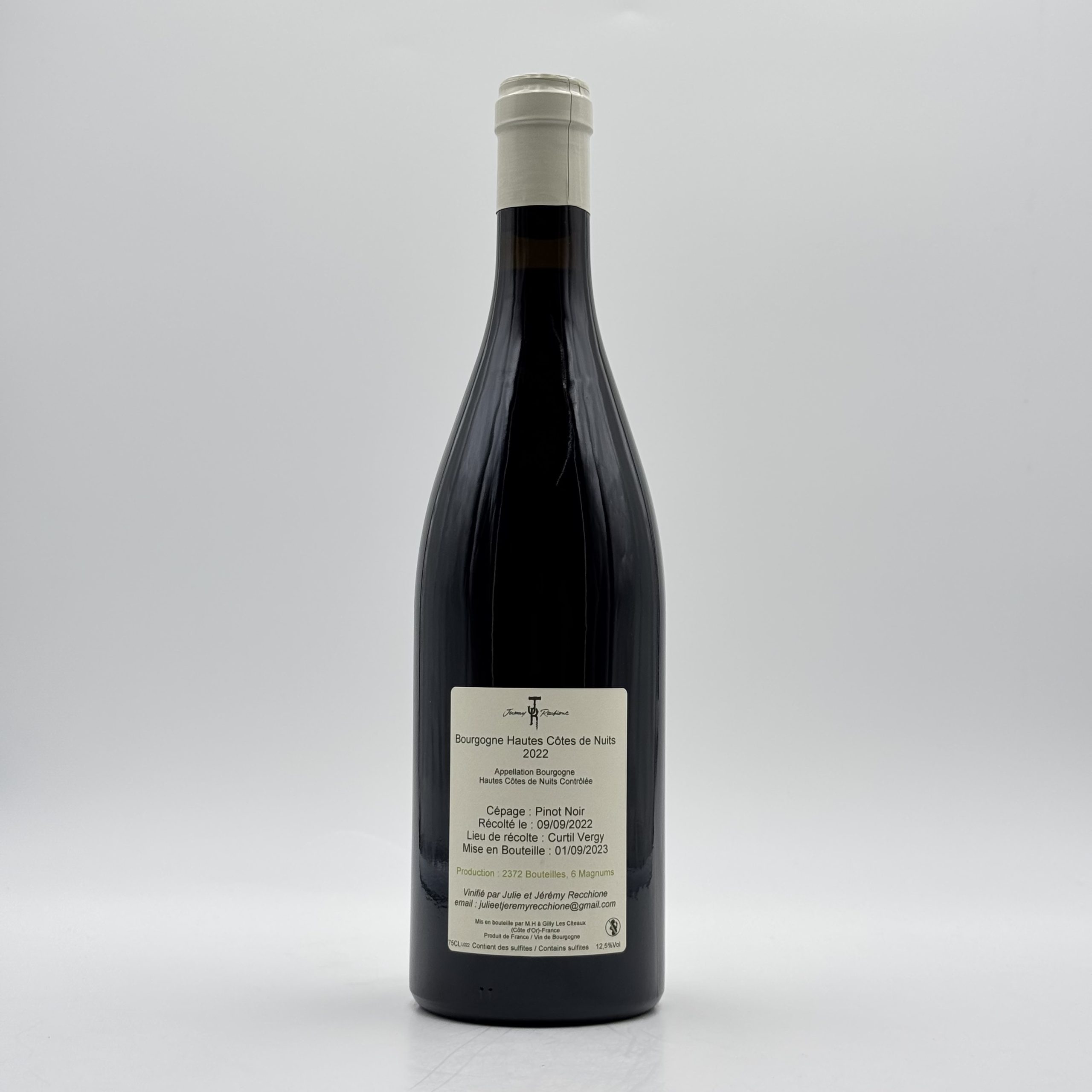 Il Hautes Côtes de Nuits di Jérémy Recchione rappresenta una delle interpretazioni più raffinate e contemporanee del Pinot Noir borgognone. Prodotto in quantità limitate nei preziosi vigneti delle Hautes Côtes, questo vino esprime un perfetto equilibrio tra freschezza, mineralità e finezza aromatica. Nel calice si presenta con un colore rubino brillante e un bouquet elegante di ciliegia croccante, piccoli frutti rossi, violetta e leggere note speziate. Al palato è armonioso e setoso, con tannini delicati e una struttura slanciata che riflette l’identità unica del terroir. Lo stile artigianale e la cura meticolosa di Jérémy Recchione donano al vino profondità, precisione e grande bevibilità. Ideale per gli amanti dei Pinot Noir di alta gamma e per chi cerca un’espressione autentica della Borgogna contemporanea, questo Hautes Côtes de Nuits è perfetto da degustare oggi o da conservare per evoluzioni future.