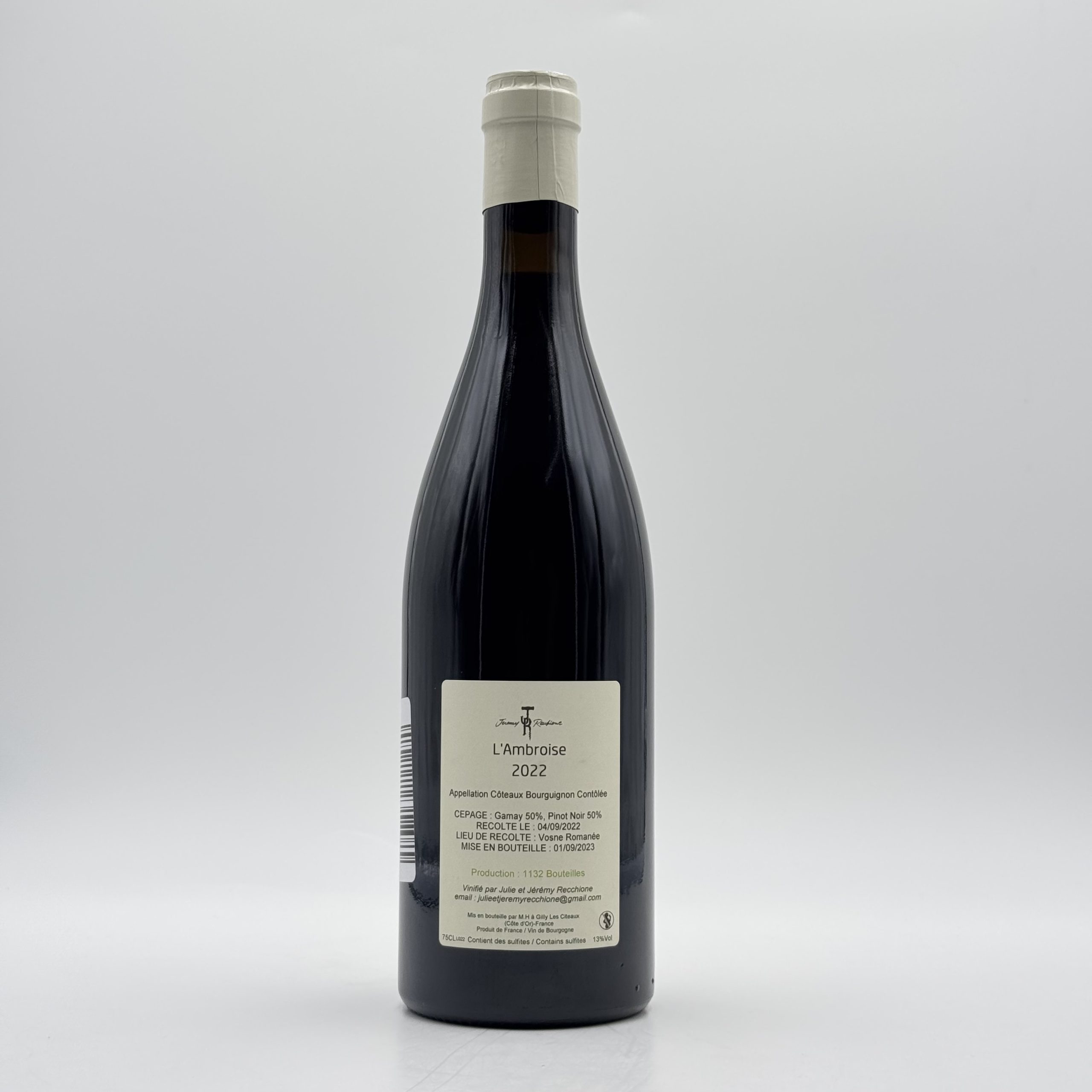 Il Hautes Côtes de Nuits di Jérémy Recchione rappresenta una delle interpretazioni più raffinate e contemporanee del Pinot Noir borgognone. Prodotto in quantità limitate nei preziosi vigneti delle Hautes Côtes, questo vino esprime un perfetto equilibrio tra freschezza, mineralità e finezza aromatica. Nel calice si presenta con un colore rubino brillante e un bouquet elegante di ciliegia croccante, piccoli frutti rossi, violetta e leggere note speziate. Al palato è armonioso e setoso, con tannini delicati e una struttura slanciata che riflette l’identità unica del terroir. Lo stile artigianale e la cura meticolosa di Jérémy Recchione donano al vino profondità, precisione e grande bevibilità. Ideale per gli amanti dei Pinot Noir di alta gamma e per chi cerca un’espressione autentica della Borgogna contemporanea, questo Hautes Côtes de Nuits è perfetto da degustare oggi o da conservare per evoluzioni future.