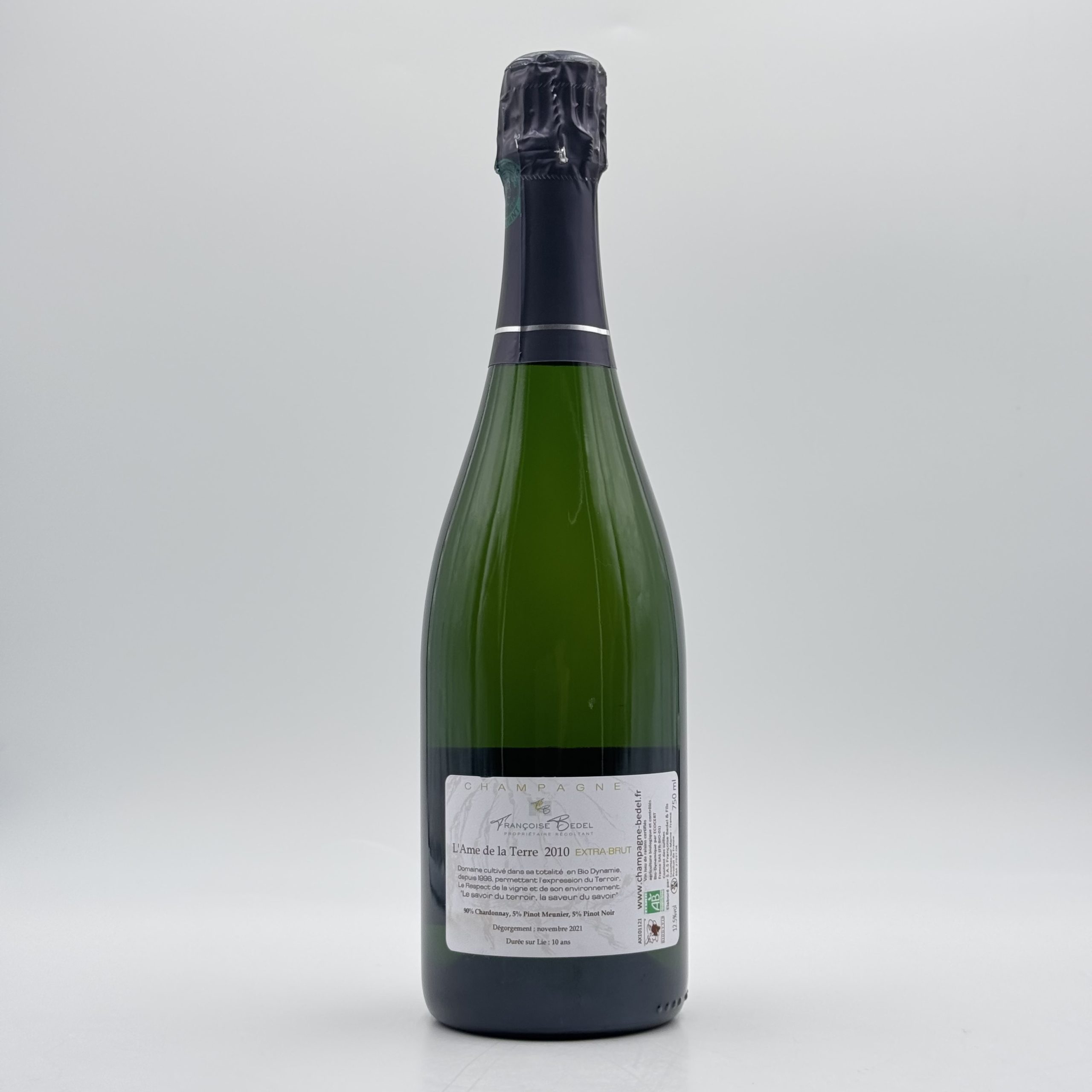 Lo Champagne “Âme de la Terre” 2010 di Françoise Bedel è una cuvée millesimata di grande personalità, espressione autentica della filosofia biodinamica della storica maison situata nella Vallée de la Marne. Prodotto da vigneti coltivati secondo pratiche naturali e raccolti manualmente, questo Champagne rappresenta un perfetto equilibrio tra terroir, annata e savoir-faire artigianale.  Nel calice si presenta con un elegante colore giallo dorato luminoso e un perlage fine e persistente. Il bouquet è intenso e complesso, con note di frutta secca, miele e agrumi canditi che si intrecciano a delicati richiami speziati di cannella e pan brioche. Al palato è ampio, raffinato e strutturato, sostenuto da una fresca mineralità e da una vibrante tensione gustativa che accompagna verso un finale lungo e armonioso.  Questo Champagne millesimato rappresenta una scelta ideale per gli appassionati e per chi desidera arricchire la propria cantina con una bottiglia di grande carattere. Perfetto in abbinamento con crostacei, pesce nobile e piatti di alta cucina, lo Champagne Françoise Bedel Âme de la Terre 2010 incarna eleganza, profondità e autenticità, offrendo un’esperienza di degustazione sofisticata e memorabile.