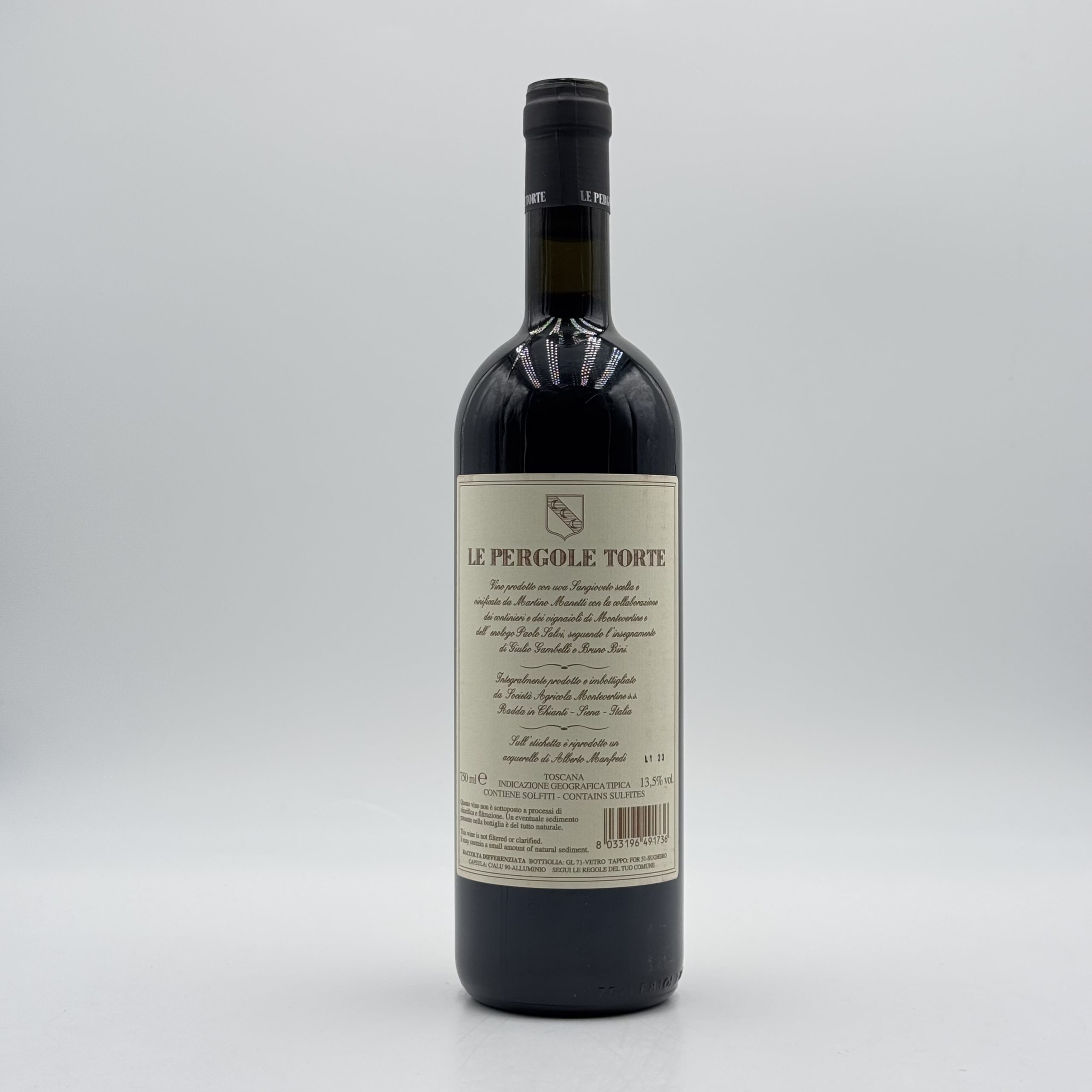 Pergole Torte 2020 è uno dei grandi simboli del Sangiovese toscano, etichetta iconica della storica azienda Montevertine. Nato da vigne selezionate situate sulle colline di Radda in Chianti, questo vino rappresenta l’espressione più pura e rigorosa del vitigno, vinificato senza compromessi secondo una filosofia artigianale e identitaria. Alla vista si presenta di un rosso rubino intenso e luminoso. Il profilo aromatico è raffinato e profondo, con note di ciliegia matura, viola appassita, erbe aromatiche, tabacco e leggere sfumature speziate, accompagnate da richiami minerali. Al palato il Pergole Torte 2020 è elegante, strutturato e vibrante, con tannini setosi e una freschezza ben integrata che ne sostiene la straordinaria lunghezza gustativa. Il finale è armonico, persistente e di grande finezza. Affinato in grandi botti di rovere, questo vino esprime un perfetto equilibrio tra tradizione e longevità, rendendolo ideale sia per un consumo immediato che per un lungo invecchiamento in cantina. Perfetto in abbinamento a carni rosse, selvaggina e piatti della cucina toscana più autentica, è una scelta d’eccellenza per collezionisti e appassionati di grandi rossi italiani.