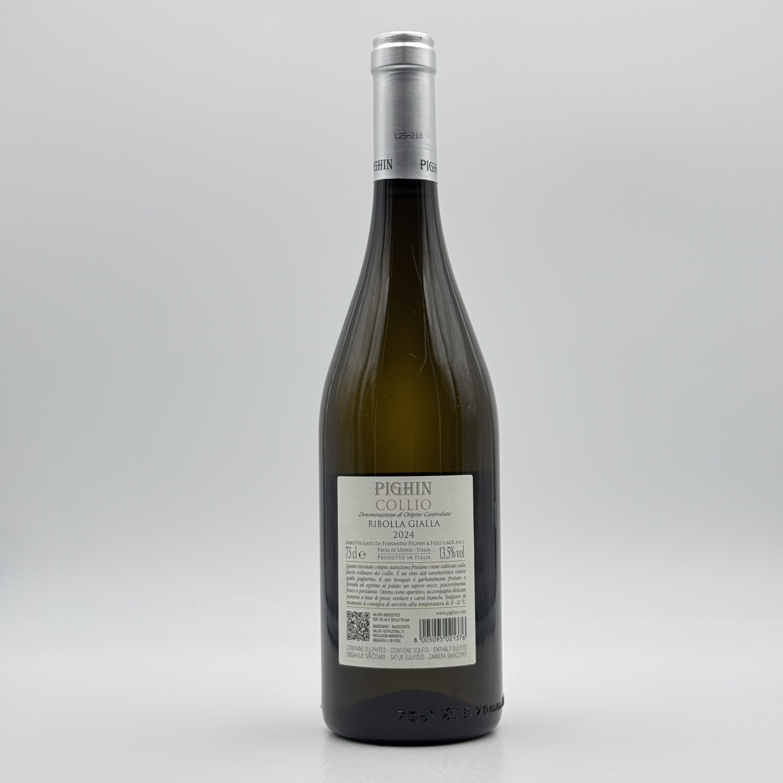 La Ribolla Gialla Collio Pighin 2024 rappresenta una delle espressioni più autentiche e raffinate del bianco simbolo del Friuli Venezia Giulia. Proveniente dai vigneti collinari del Collio, dove l’alternanza tra brezze fresche e suoli ricchi di marne dona al frutto un profilo aromatico puro e luminoso, questa Ribolla Gialla affascina per freschezza, finezza e precisione. Al calice sprigiona note di agrumi, fiori bianchi e delicati richiami minerali, mentre al palato si presenta vibrante, snella e armoniosamente sapida, con un finale elegante che invoglia al sorso successivo. La vendemmia 2024 conferma lo stile impeccabile della cantina Pighin, capace di coniugare tradizione e modernità in un bianco dalla grande bevibilità ma al tempo stesso ricercato. Perfetta per accompagnare crudi di mare, piatti gourmet e aperitivi di classe, è una scelta ideale per chi cerca un vino distintivo, autentico e impeccabilmente equilibrato.