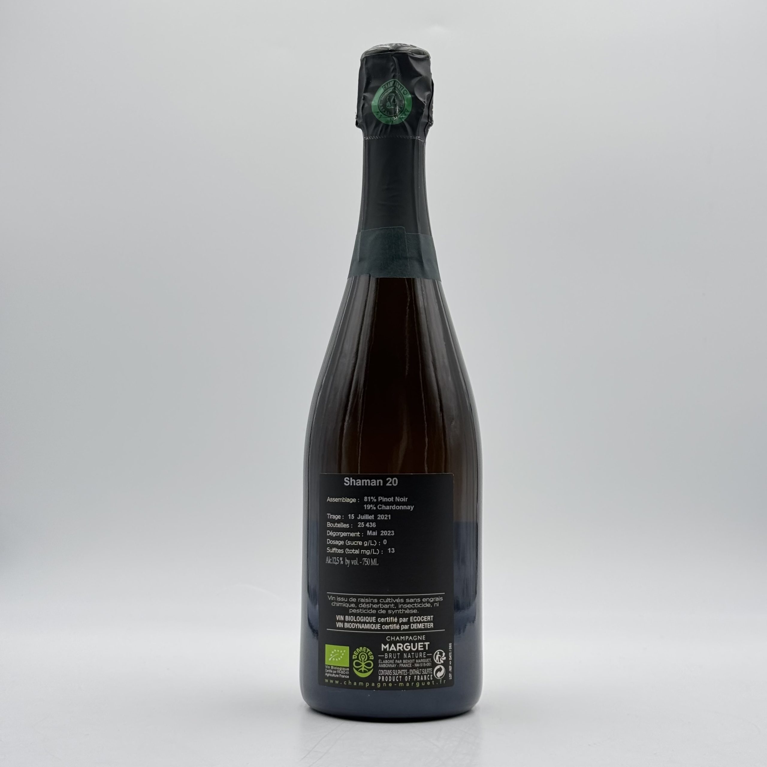 Lo Shaman 20 di Marguet è uno Champagne di grande personalità, espressione autentica del terroir della Montagne de Reims e della filosofia biodinamica della Maison. Prodotto con uve coltivate secondo principi naturali e vinificato con interventi minimi, questo Champagne incarna purezza, energia e precisione aromatica. Al calice si distingue per un perlage fine e persistente, mentre al naso regala note di agrumi freschi, mela croccante, piccoli frutti rossi e delicate sfumature floreali, accompagnate da eleganti accenni minerali e gessosi. In bocca è vibrante, teso e armonico, con una freschezza dinamica che sostiene una struttura raffinata e una chiusura lunga e salina. Perfetto per accompagnare crudi di pesce, ostriche, crostacei e piatti gourmet, lo Shaman 20 Marguet è la scelta ideale per chi cerca uno Champagne artigianale di alta gamma, capace di coniugare complessità, finezza ed espressività territoriale.