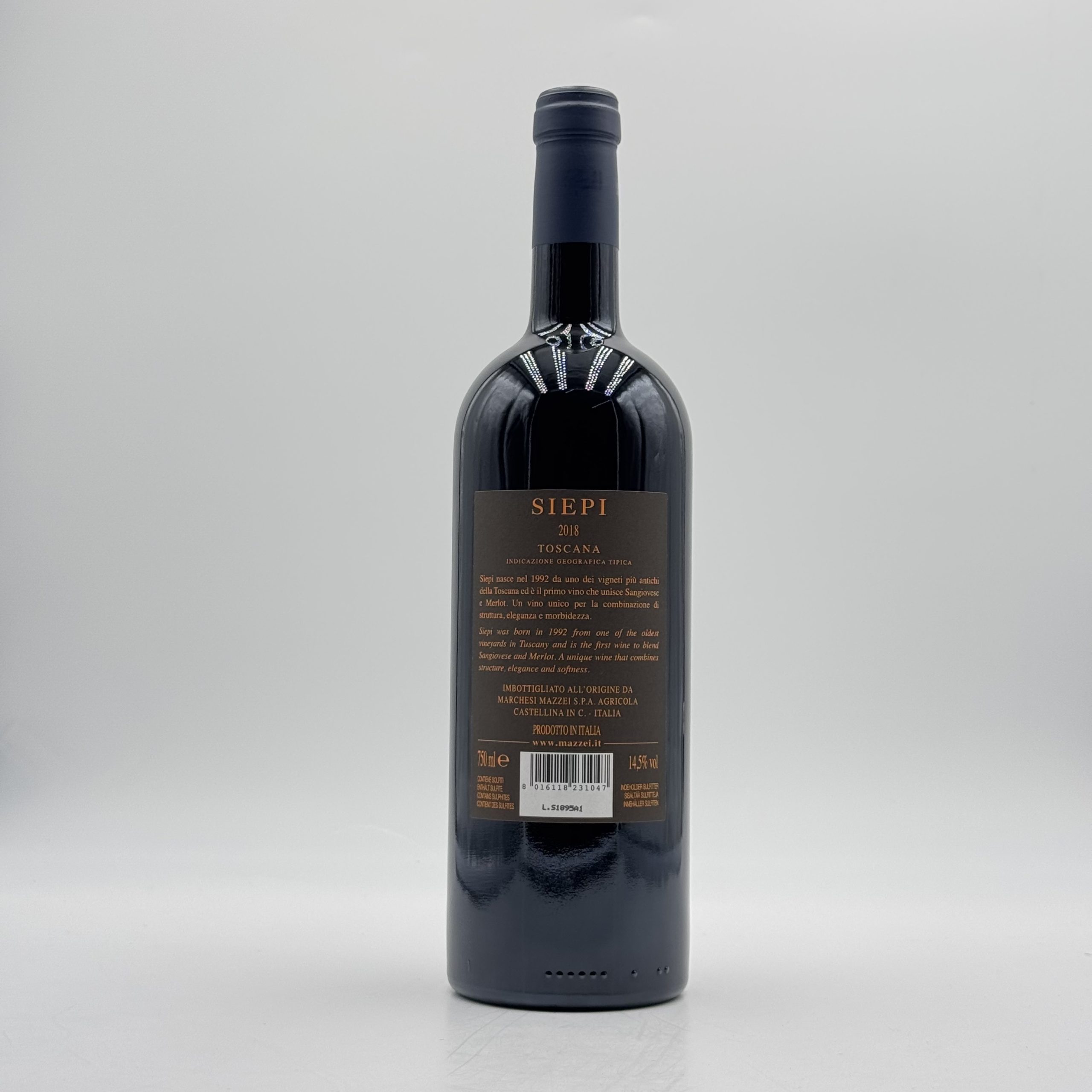 Siepi Toscana IGT 2018 Mazzei è un vino iconico, emblema dell’equilibrio perfetto tra Sangiovese e Merlot, due vitigni che trovano nella tenuta di Castellina in Chianti la loro massima espressione. Frutto di un’annata eccezionale e di oltre sei secoli di tradizione enologica della famiglia Mazzei, questo Super Tuscan di rara eleganza regala un bouquet intenso e complesso, con note di frutti rossi maturi, spezie dolci, cacao e tabacco. Al palato è vellutato e profondo, sostenuto da tannini setosi e da una struttura imponente ma armoniosa. L’affinamento in barrique per 18 mesi conferisce morbidezza e un finale lungo e persistente, con sfumature balsamiche e minerali che ne esaltano la raffinatezza. Perfetto in abbinamento a carni rosse, selvaggina e formaggi stagionati, il Siepi 2018 rappresenta una delle etichette più prestigiose della Toscana, capace di evolvere magnificamente nel tempo. Un vino da collezione, simbolo dell’eccellenza Mazzei e dell’autentico spirito del Toscana IGT.