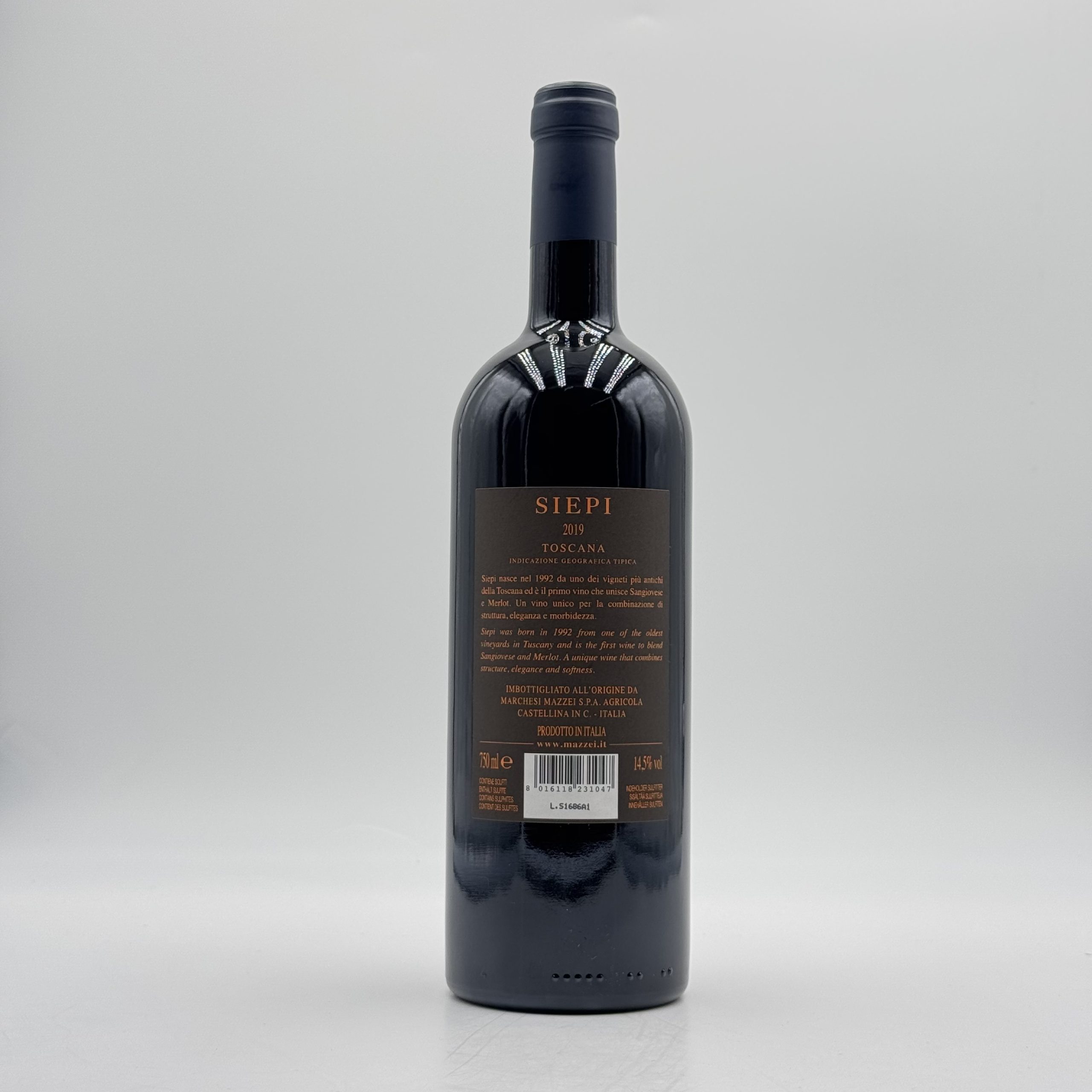 Siepi Toscana IGP 2019 Mazzei è un capolavoro enologico che incarna l’eccellenza e l’eleganza della Toscana. Nato dal perfetto equilibrio tra Sangiovese e Merlot, questo vino rappresenta una delle più alte espressioni della storica Tenuta di Castello di Fonterutoli, proprietà della famiglia Mazzei dal 1435. Il Siepi 2019 si distingue per la sua struttura complessa, il profilo aromatico intenso e la straordinaria armonia tra potenza e finezza. Al naso si apre con note di frutti rossi maturi, spezie dolci, cacao e tabacco, mentre al palato rivela una trama vellutata, tannini eleganti e un finale lungo e persistente. Affinato in barrique di rovere francese per circa 18 mesi, è un vino di grande longevità e carattere, capace di evolvere splendidamente nel tempo. Ideale con piatti di cacciagione, carni rosse e formaggi stagionati, il Siepi Toscana IGP 2019 è un’esperienza sensoriale che racconta l’anima autentica del terroir toscano e la maestria della famiglia Mazzei. Un vino da collezione per chi cerca raffinatezza, equilibrio e prestigio in ogni sorso.